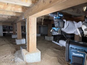 今回、大引きと床束が沢山の食害を受けていた為、知り合いの大工さんに依頼しました。