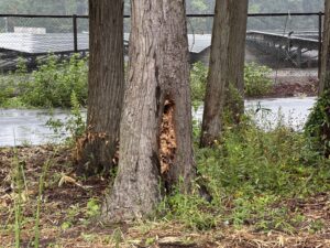 ↑↑↑大きな空洞は来年以降ハチが巣を作らないようにしっかり加工して埋めます。